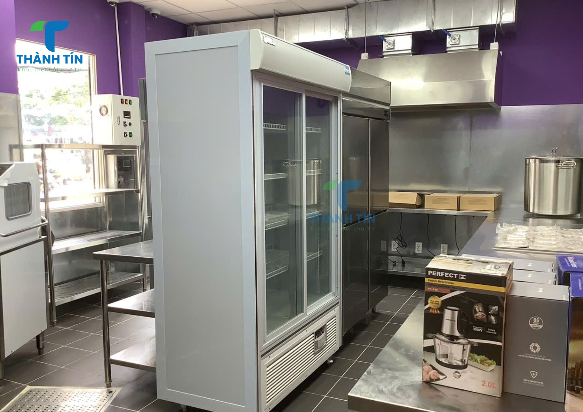 - Thiết bị bảo quản: tủ đông 4 cánh, tủ lạnh 4 cánh, bàn salad..