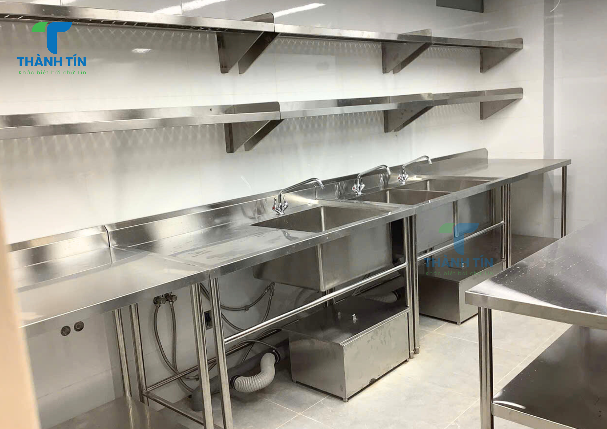 Nhằm đáp ứng yêu cầu vận hành thực tế của khách sạn, Thành Tín đã tư vấn và cung cấp trọn bộ thiết bị inox cho khu vực bếp và khu phụ trợ, đảm bảo tiêu chuẩn vệ sinh, độ bền cao và tối ưu công năng sử dụng.