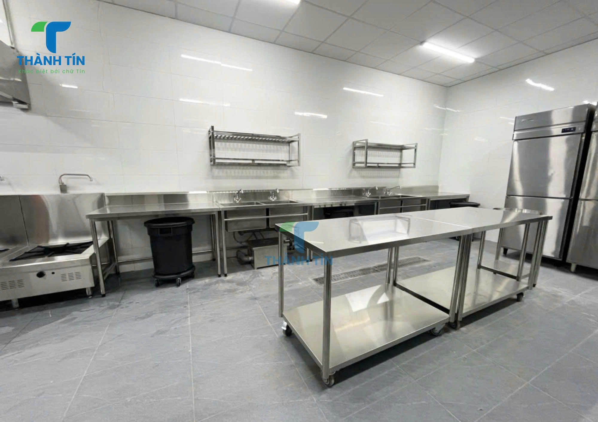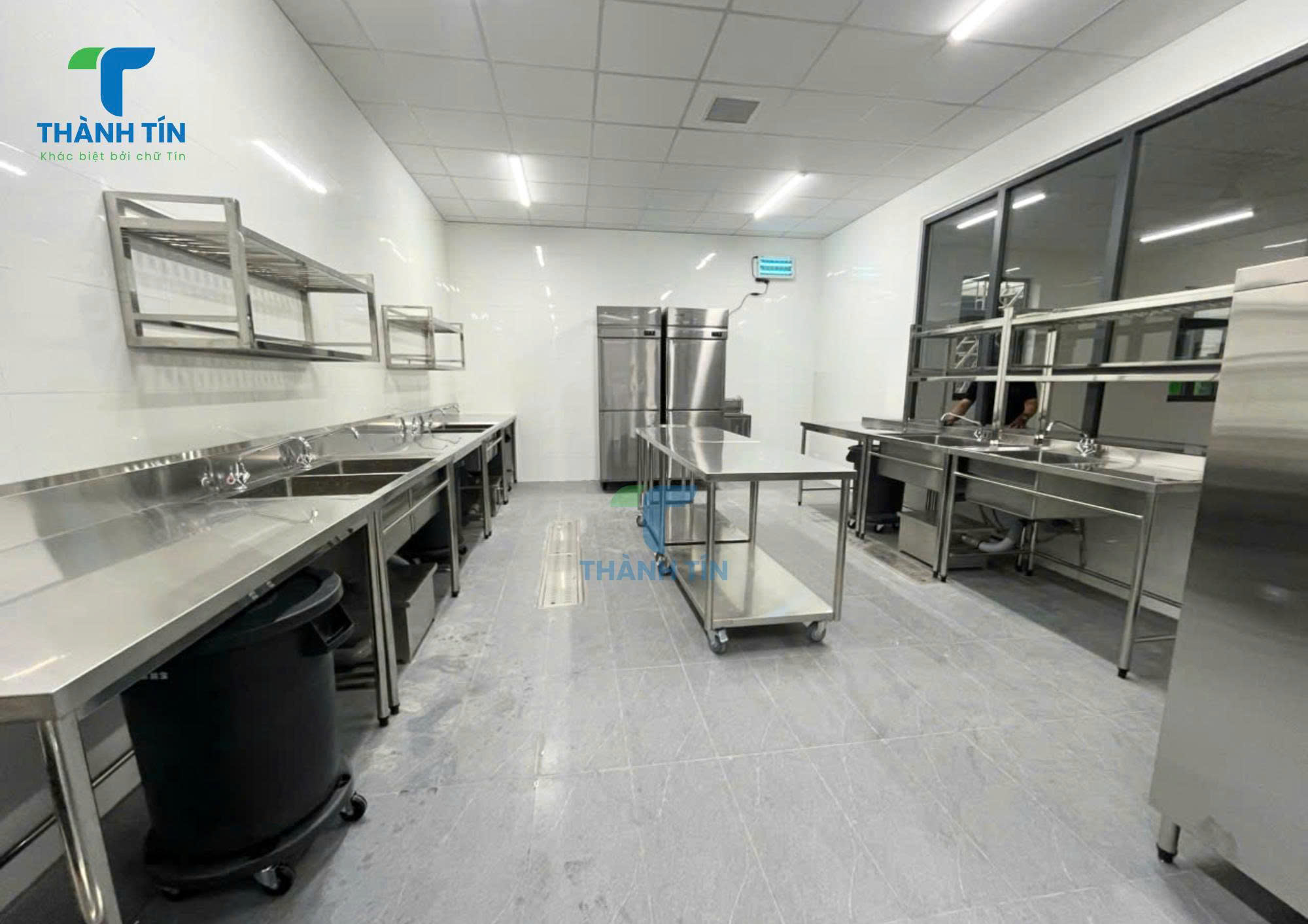 Nhờ đó giúp hạn chế nhiễm chéo, tăng tốc độ phục vụ và đảm bảo tiêu chuẩn vệ sinh an toàn thực phẩm trong môi trường bếp nhà ăn công nghiệp.