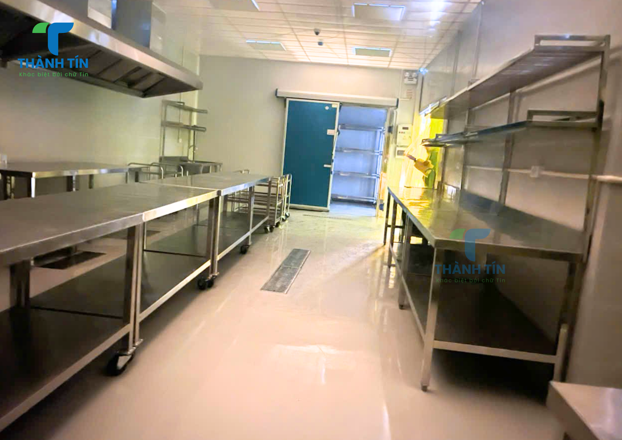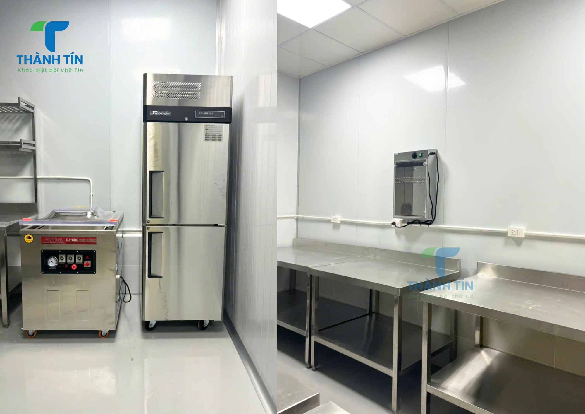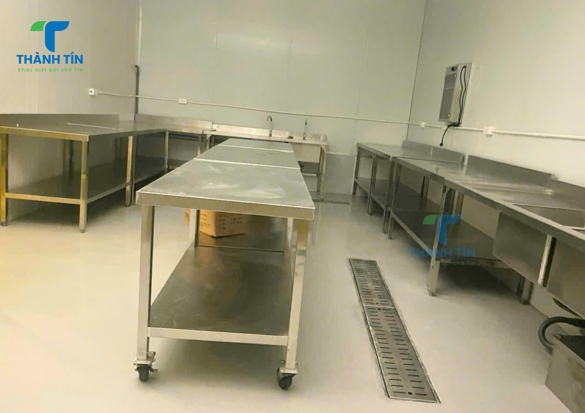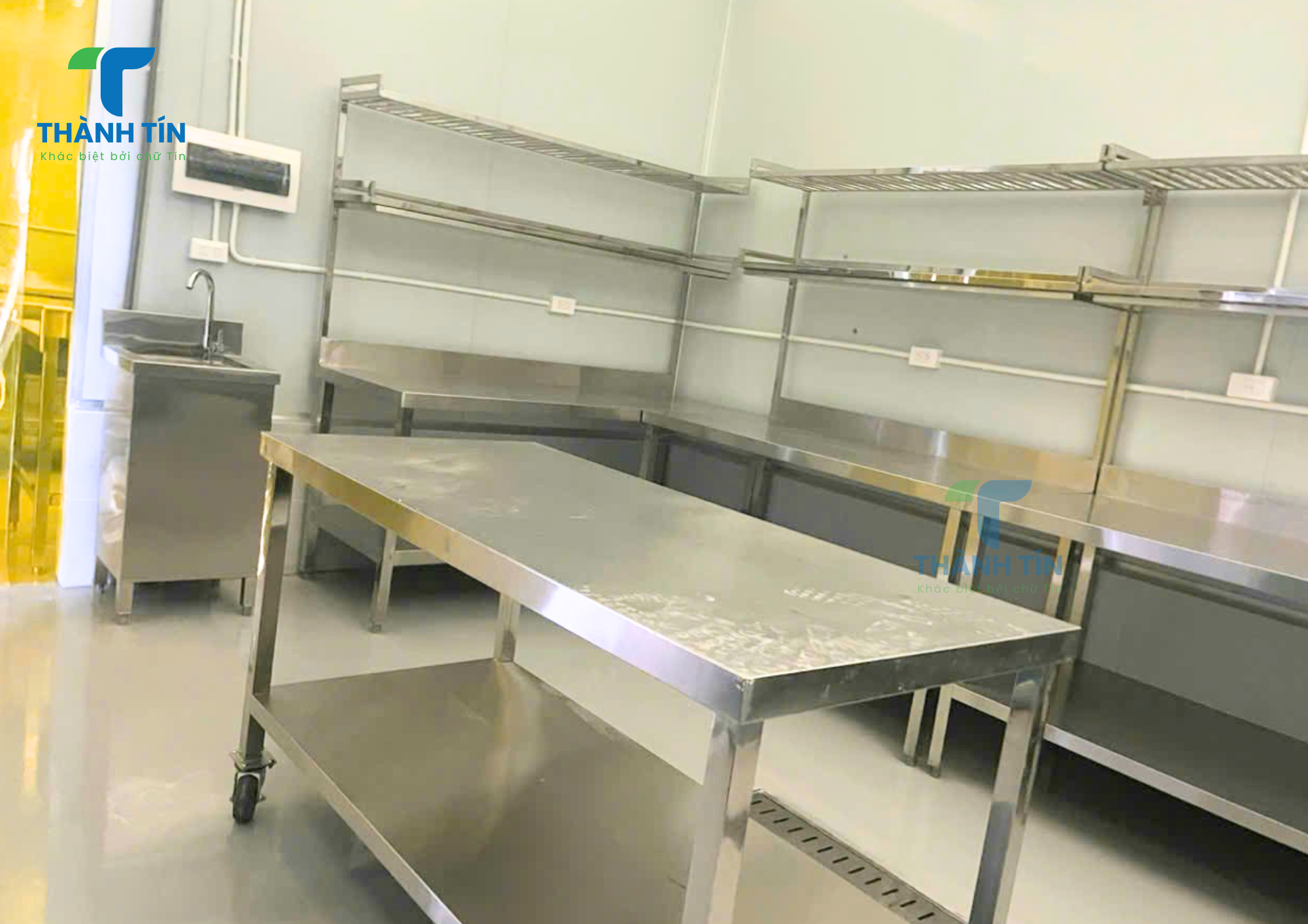 Dựa trên khảo sát thực tế và yêu cầu vận hành của Siba Food, Thành Tín đã tư vấn và cung cấp giải pháp thiết bị inox đồng bộ, phù hợp với mô hình bếp trung tâm hiện đại: